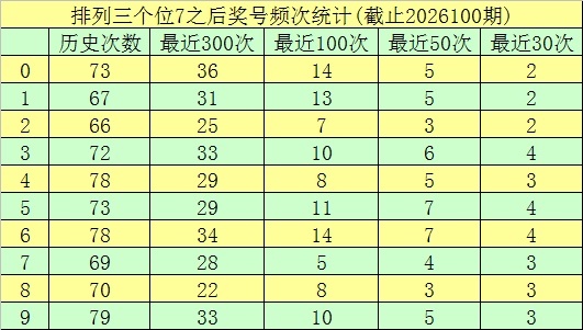 上期回顾:排列三第2026100期开出奖号207,奖号类型为:组六、小小大、偶偶奇,和值开出9。